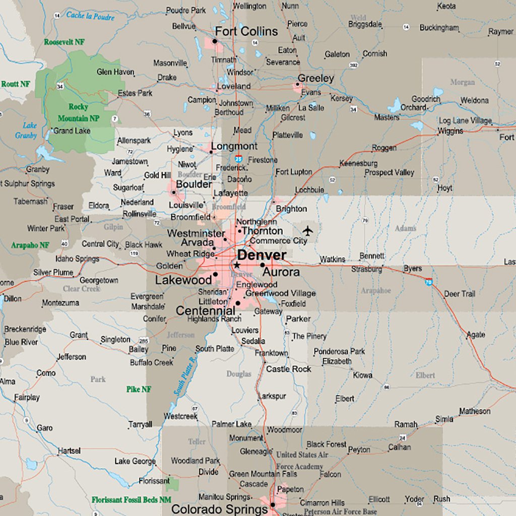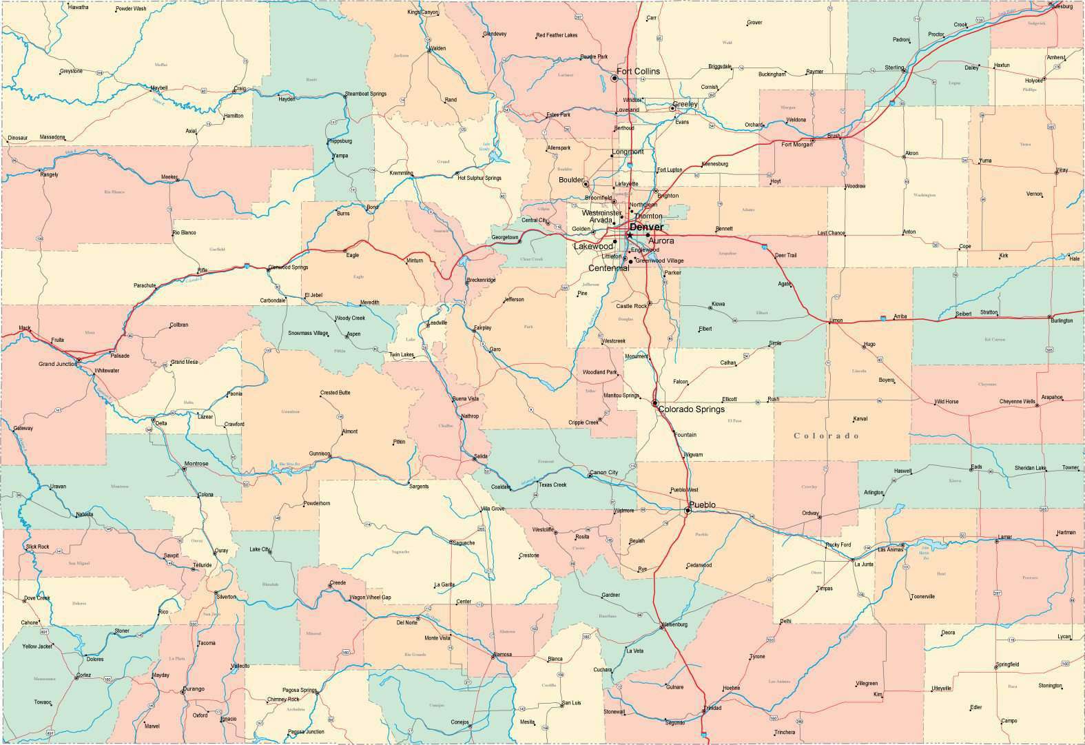 Multi Color Colorado Map With Counties Capitals And Major Cities